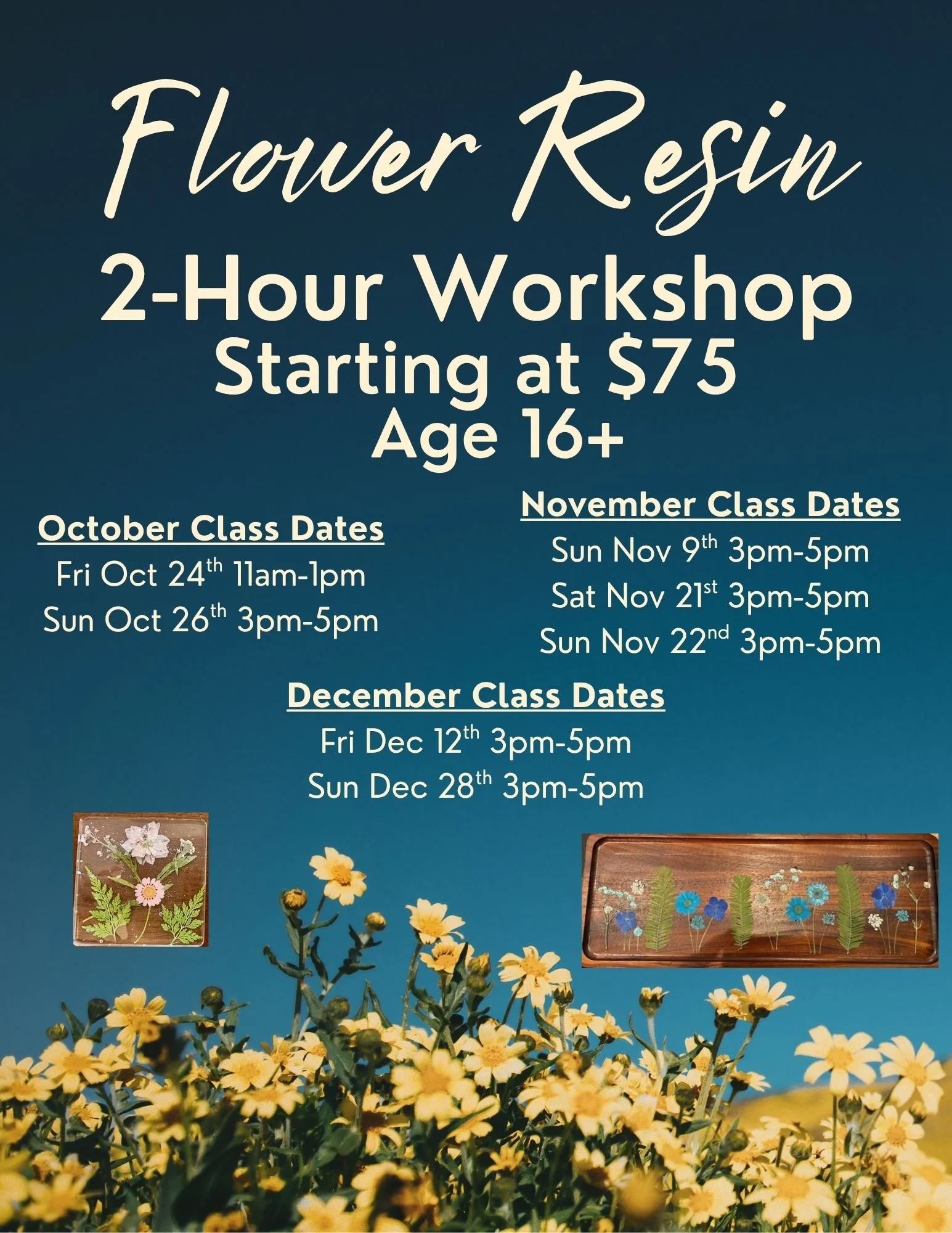 Dive into a world of creativity with our Flower Resin Workshop! Unleash your artistic talents as you select and arrange pressed flowers into a tray. Use our real flowers or bring your own (pressed flat & dried please). These trays are beautiful and each one unique. Join us for a fun and interactive class where you'll learn the secrets of resin crafting and create stunning pieces that reflect the beauty of the sea. Book your spot now and embark on a creative journey unlike any other!