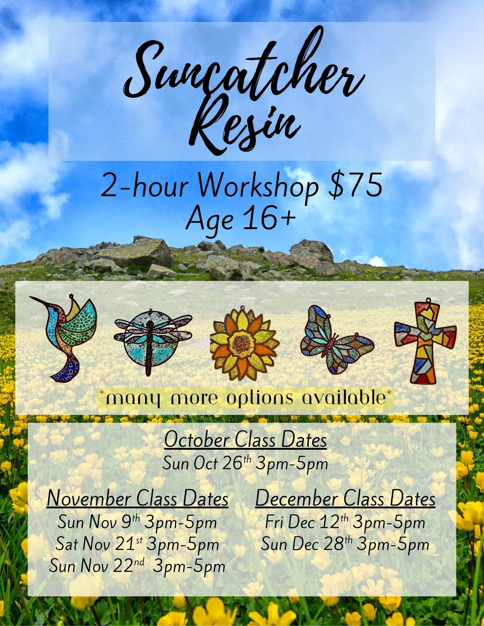 Jump into our Suncatcher Resin Workshop for a creative adventure! Discover your inner artist as you learn to cut glass, arrange dazzling designs, and encase them in resin. Grab your spot now for a fun and creative experience.
