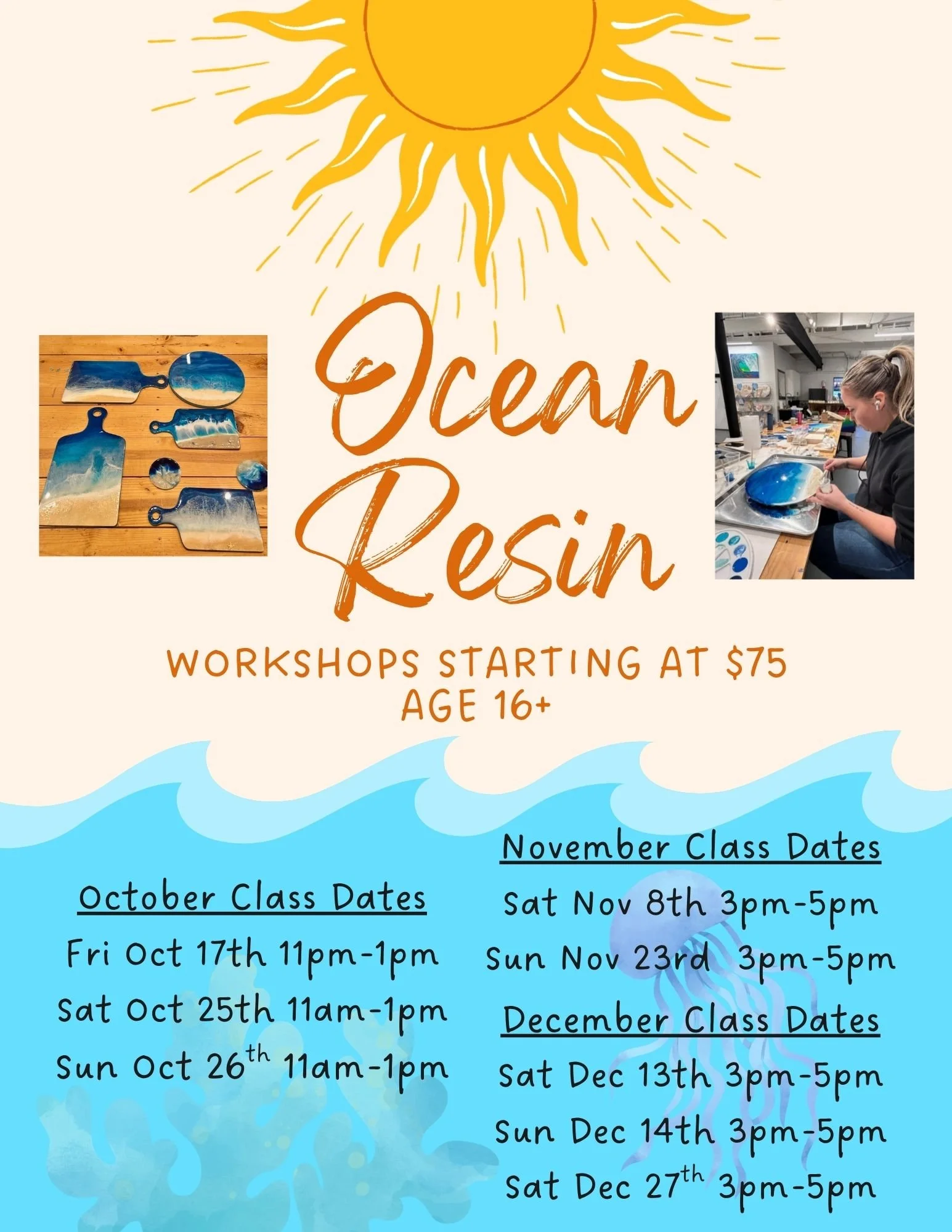 Dive into a world of creativity with our Ocean Resin Workshop! Unleash your artistic talents as you craft unique ocean-inspired designs that will elevate your home décor. Join us for a fun and interactive class where you'll learn the secrets of resin crafting and create stunning pieces that reflect the beauty of the sea. Book your spot now and embark on a creative journey unlike any other!